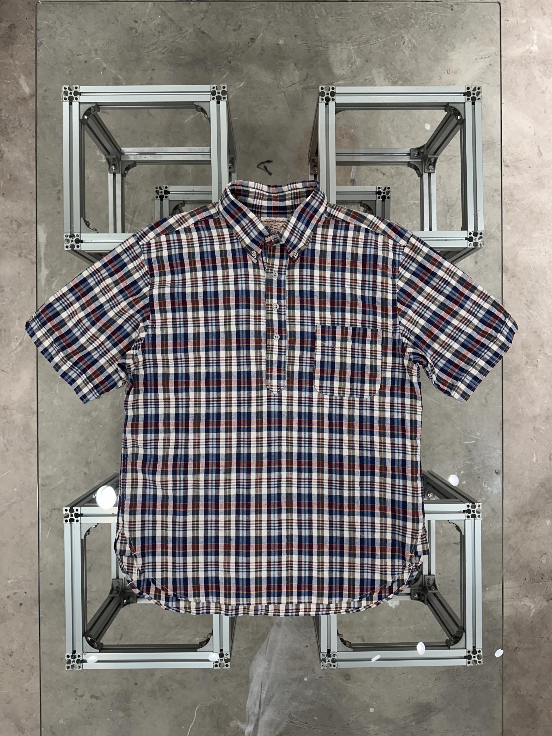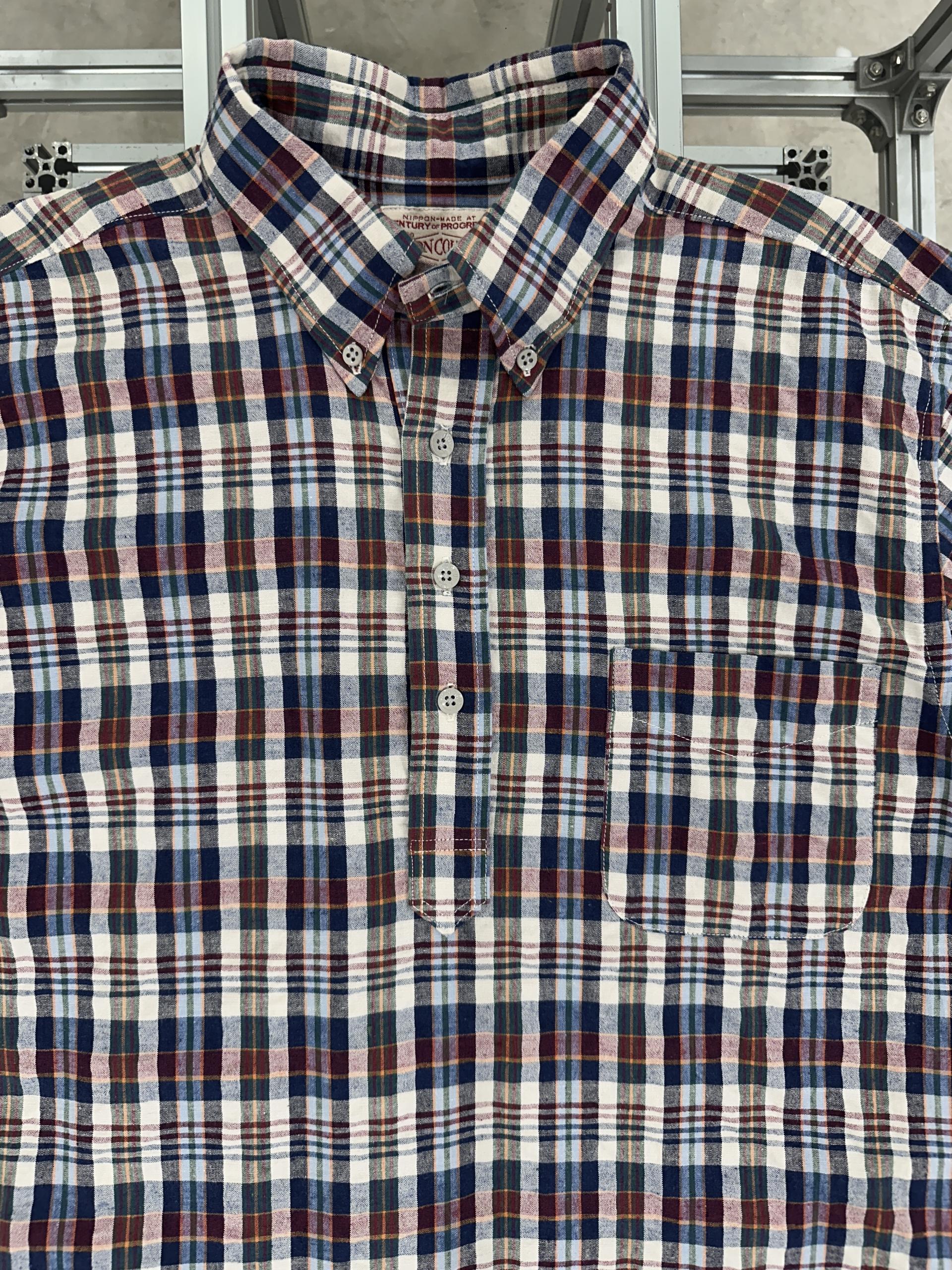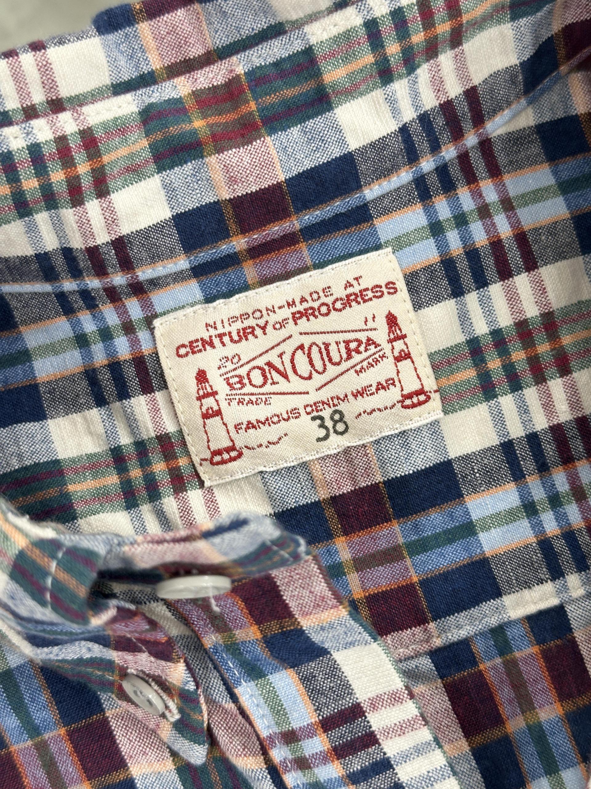 BONCOURA 특유의 정제된 빈티지 감성과 여름 분위기를 담은 매드라스 체크 풀오버 아노락 셔츠입니다.