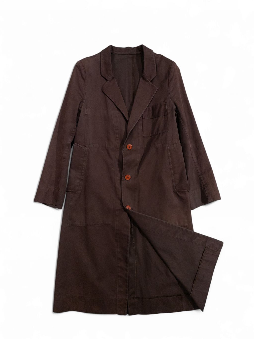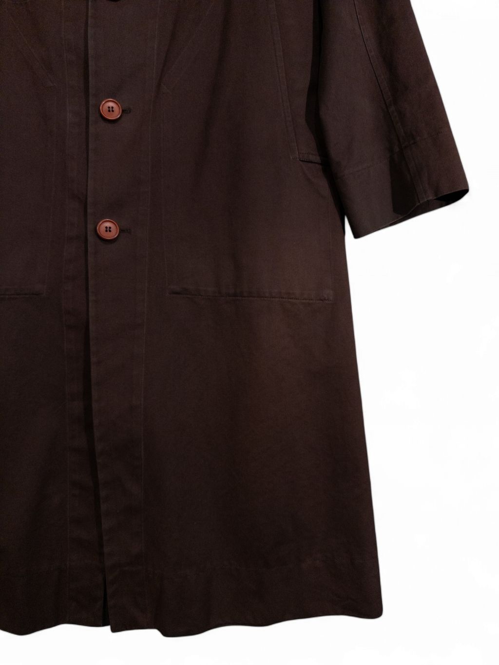 A.P.C. 특유의 절제된 미니멀리즘이 돋보이는 프렌치 워크 코트입니다. 무릎 아래까지 내려오는 기장감과 견고한 코튼 소재가 어우러져 클래식하면서도 실용적인 아우터로 완성되었으며, 은은한 워싱이 더해진 보르도 브라운 컬러는 시간이 지날수록 더욱 멋스럽게 에이징됩니다.