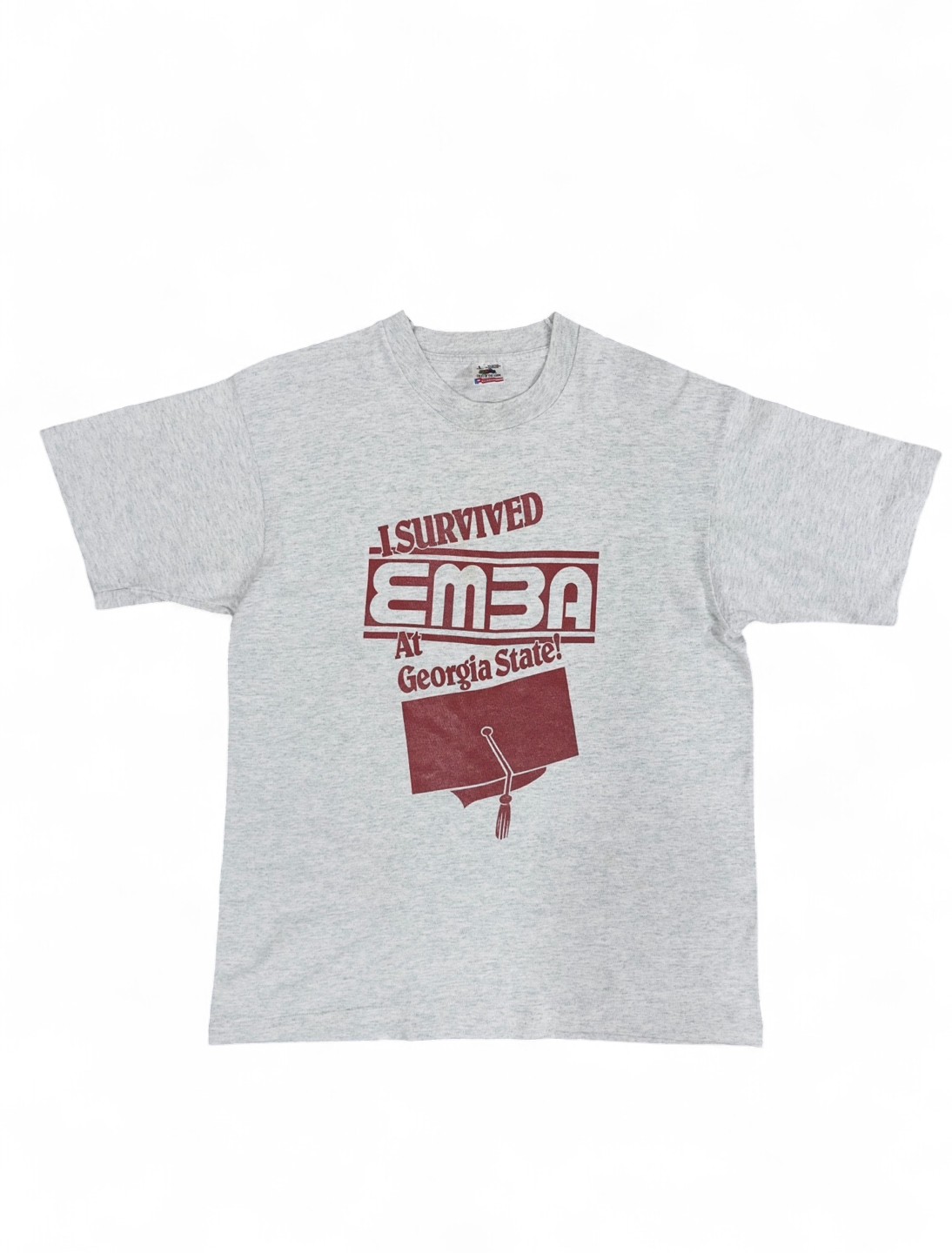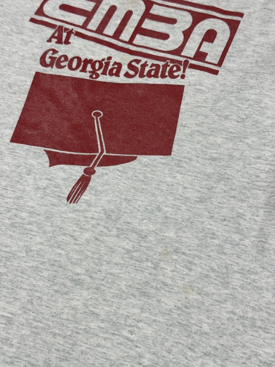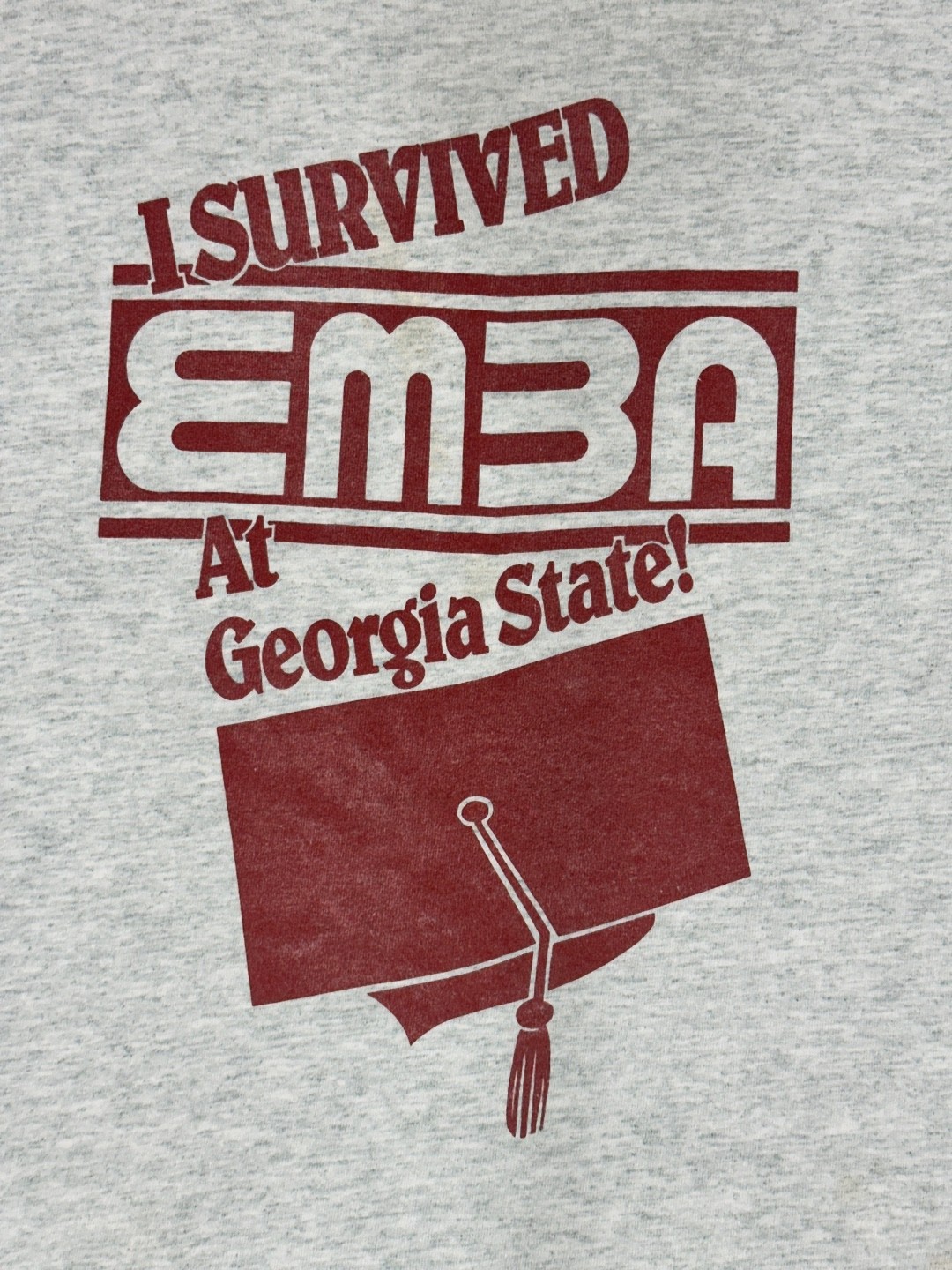 EMBA Georgia State 티셔츠는 한정 제작된 스쿨 메모리얼 아이템으로, 일반 의류 브랜드가 아닌 교육 프로그램 관련 굿즈에 해당합니다. 이러한 빈티지 아카데믹 티셔츠는 미국 대학 문화와 히스토리를 담고 있어 수집가와 빈티지 팬들에게 독특한 매력을 줍니다.