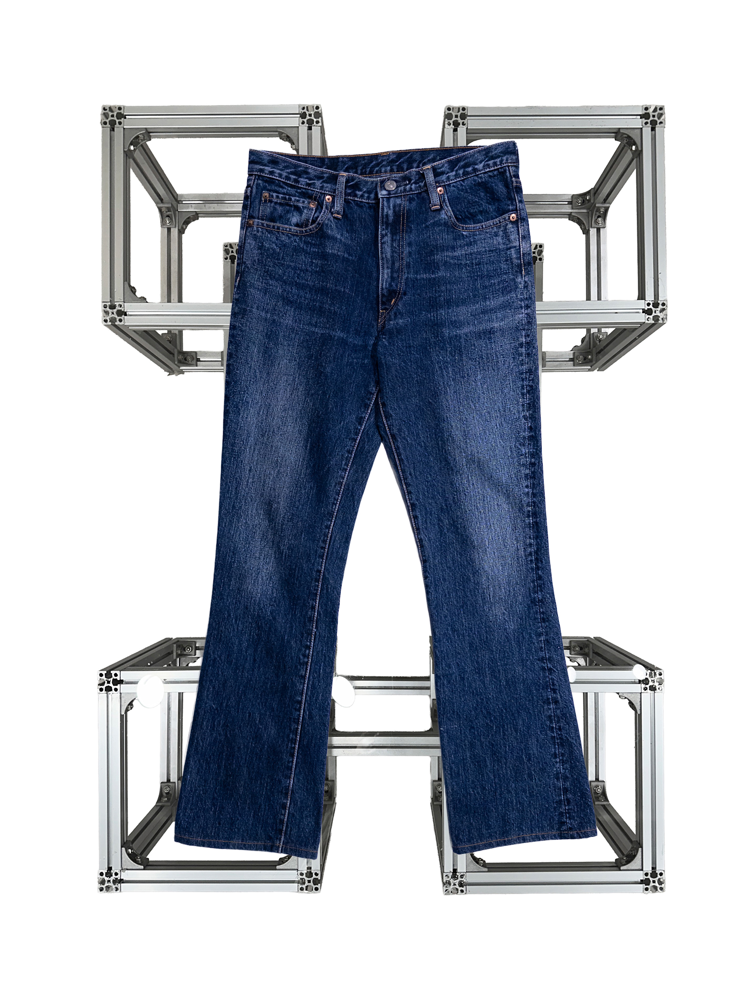 자연스러운 부츠컷 실루엣으로 Kapital 특유의 빈티지한 워싱감과 부드러운 인디고톤이 잘 묻어나는 데님입니다.