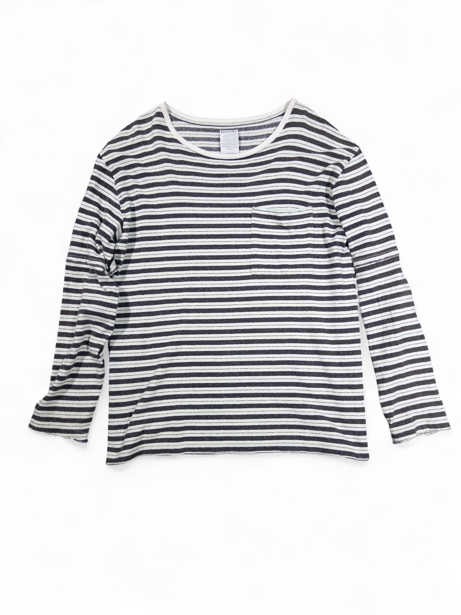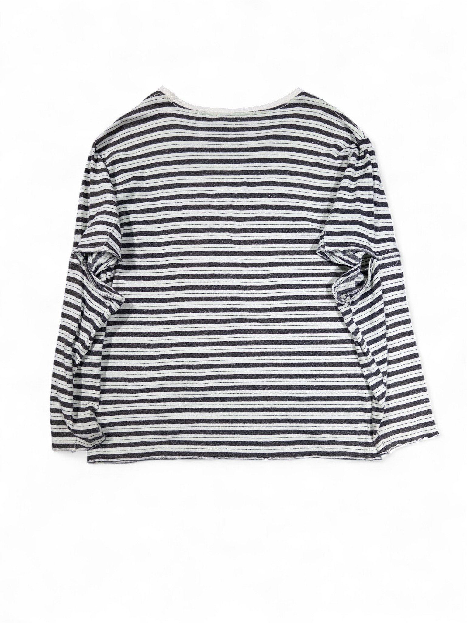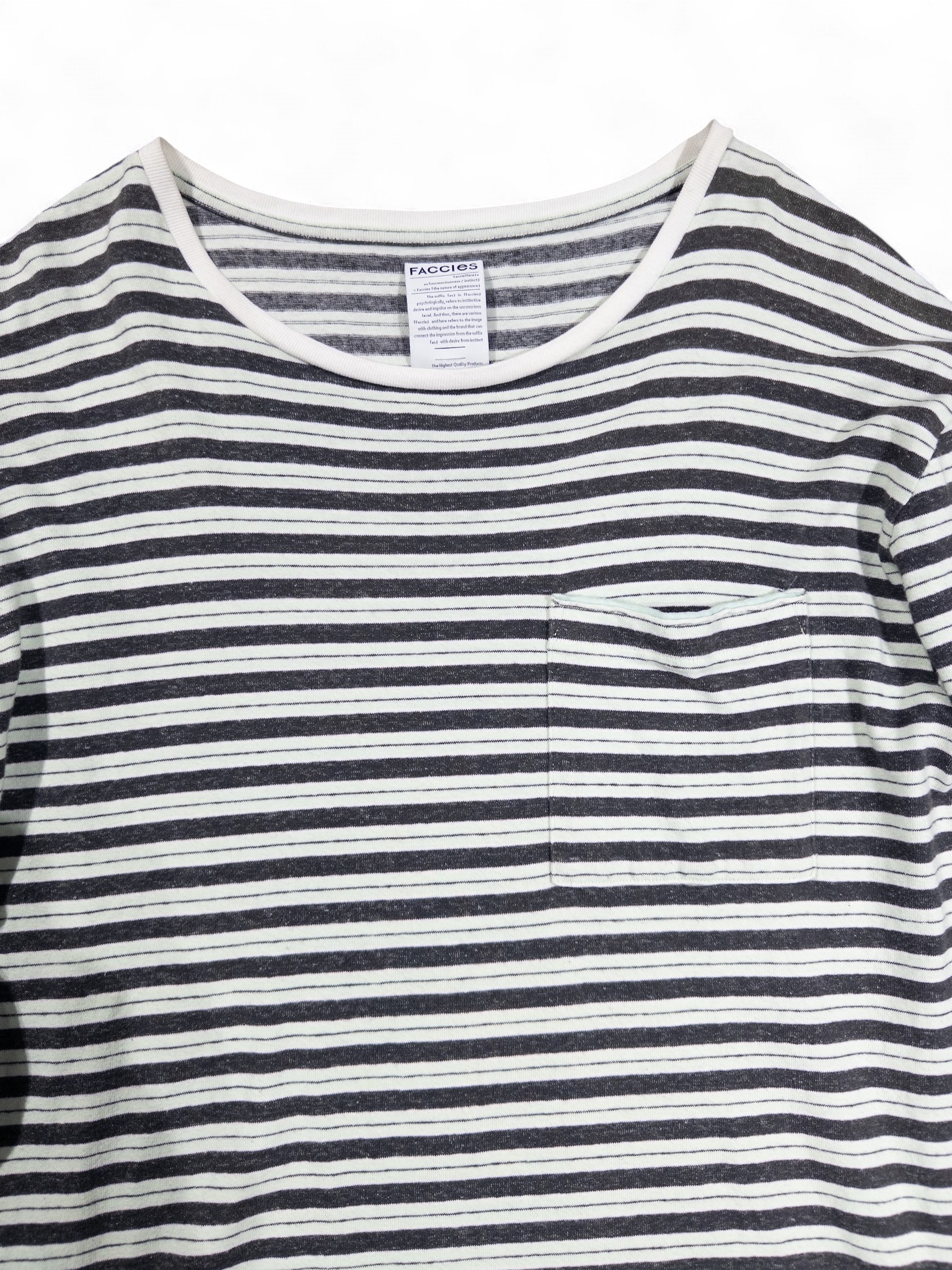 도쿄 기반의 브랜드 Faccies의 2020 S/S 시즌 스트라이프 코튼 롱슬리브 톱.