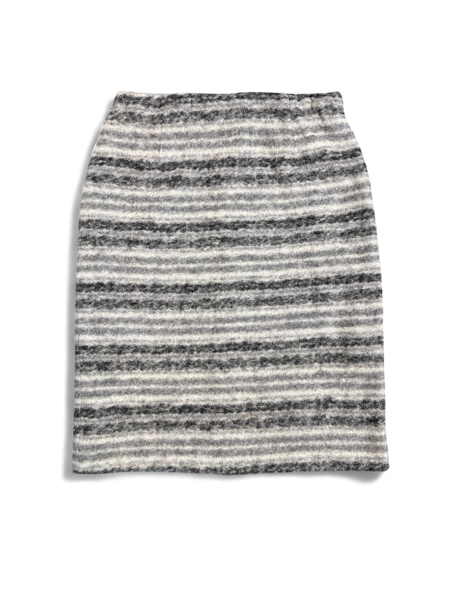 울 혼방 소재로 제작된 그레이 스트라이프 스커트입니다.