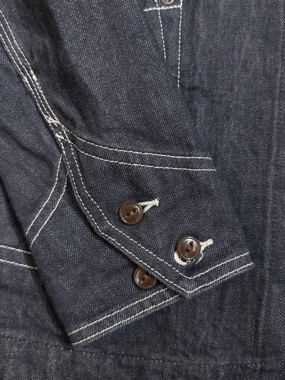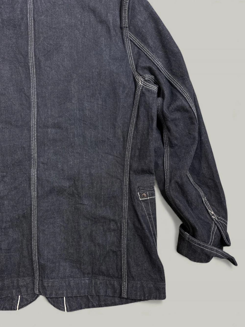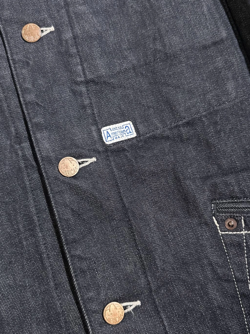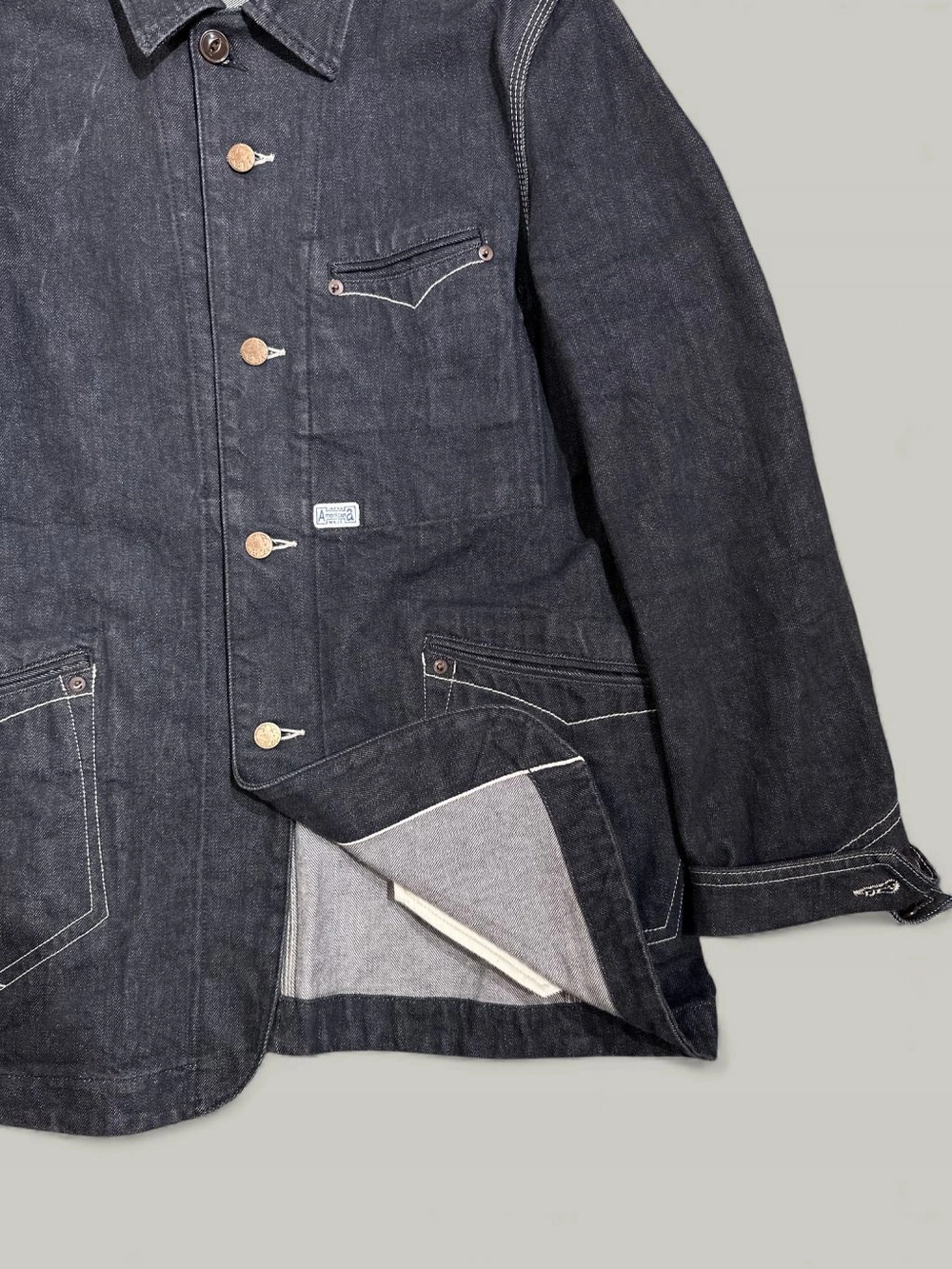 과하지 않으면서도 존재감 있는 버튼, 특유의 포켓 라인 디테일, 일본 생산 특유의 촘촘한 바느질 등 전체 완성도가 높은 제품입니다.