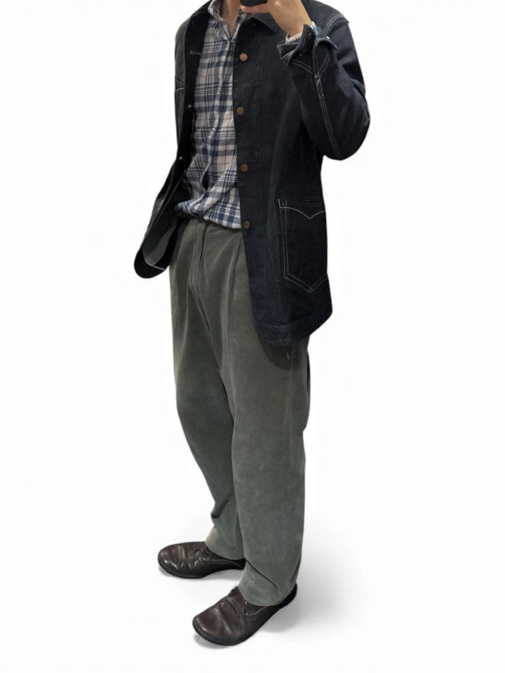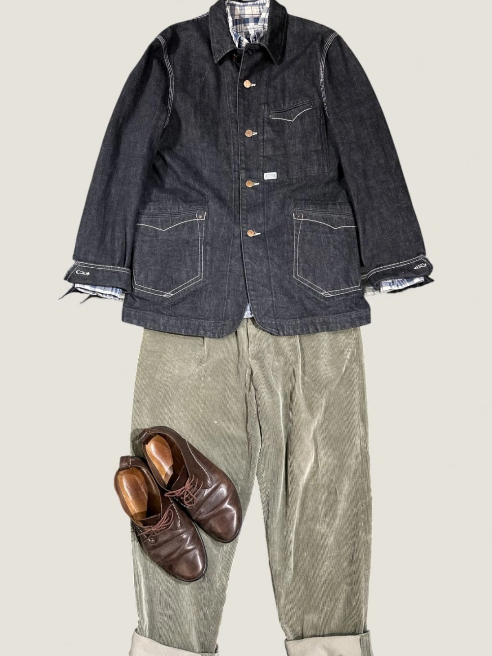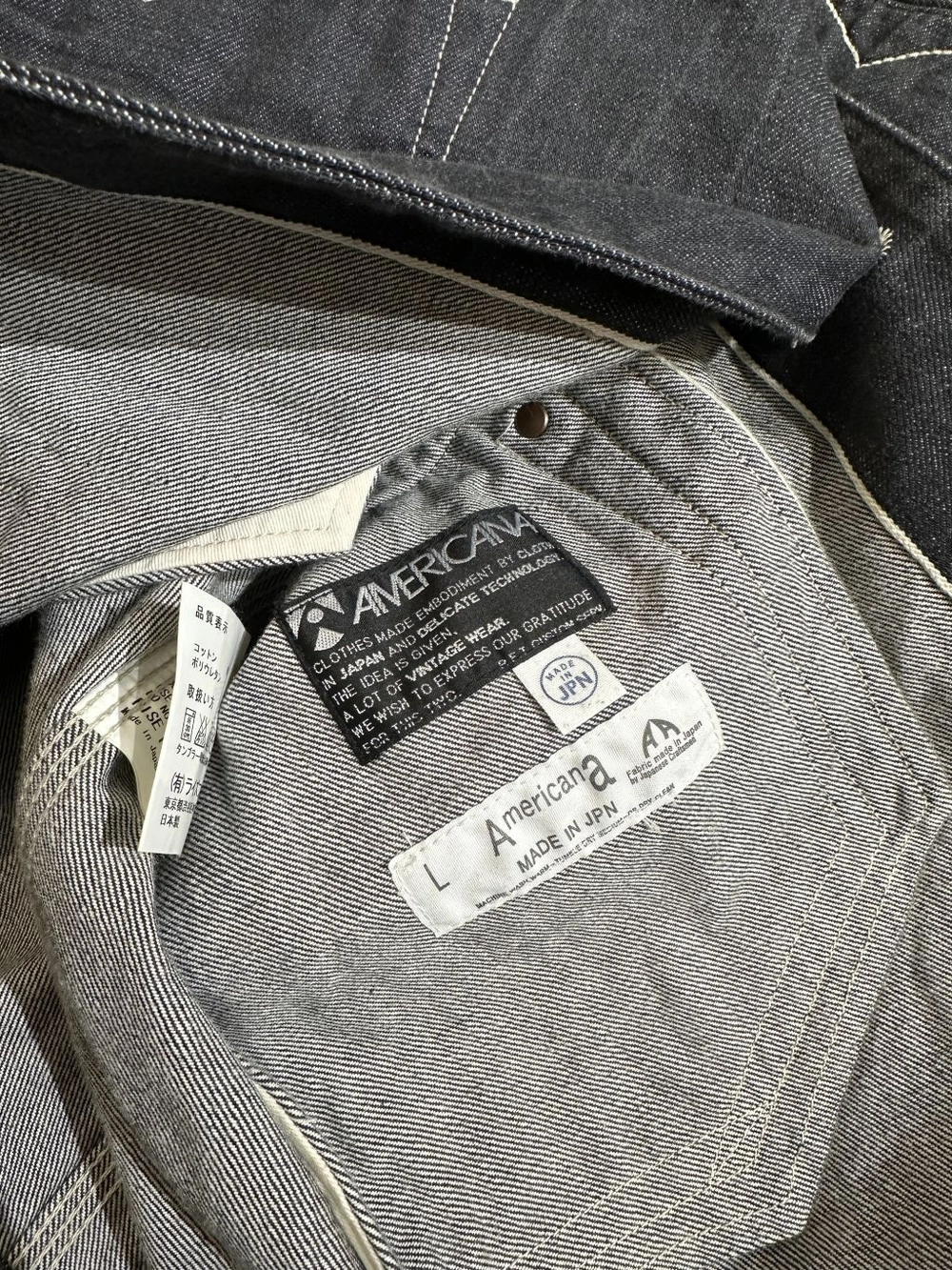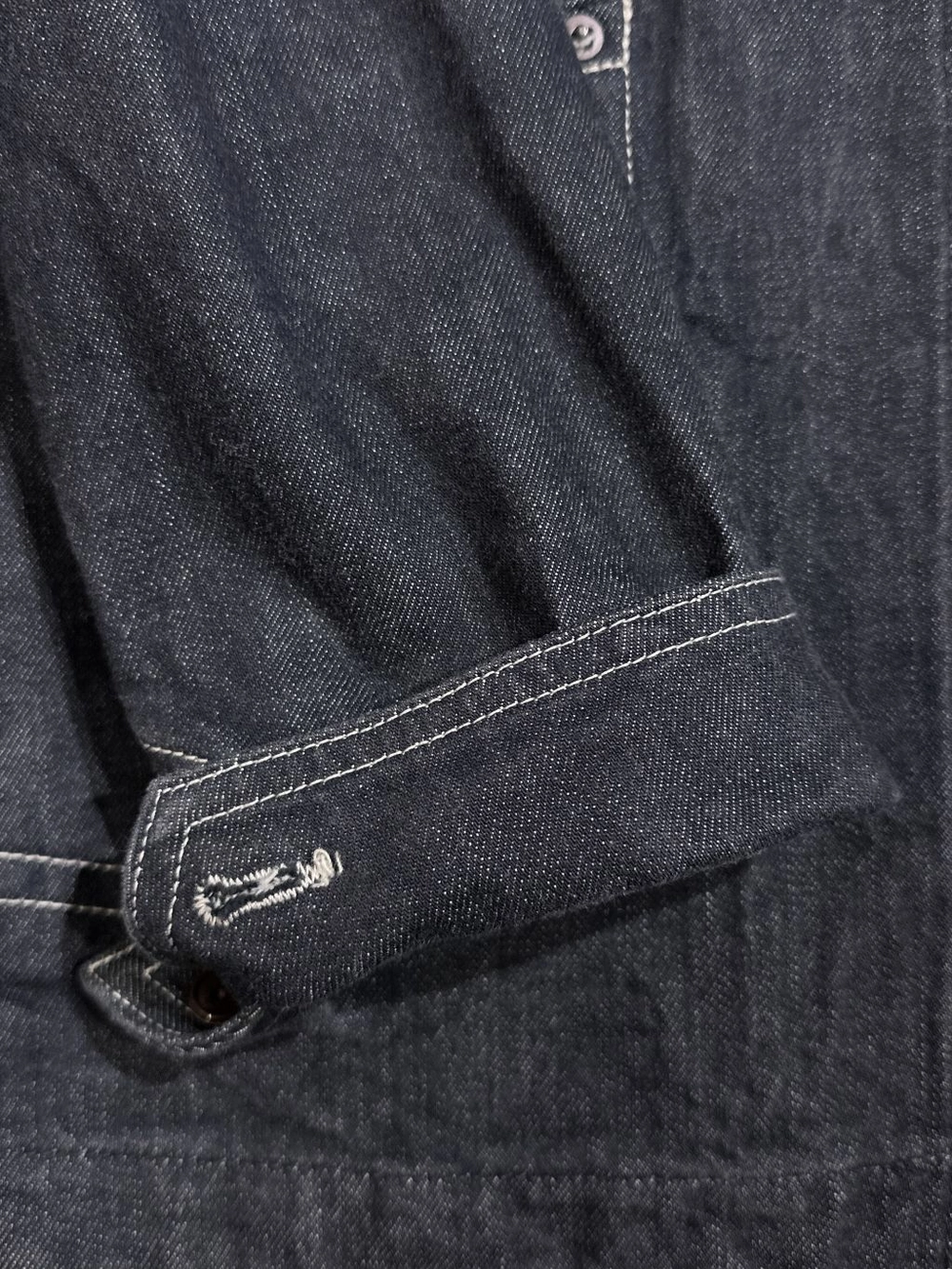 과하지 않으면서도 존재감 있는 버튼, 특유의 포켓 라인 디테일, 일본 생산 특유의 촘촘한 바느질 등 전체 완성도가 높은 제품입니다.