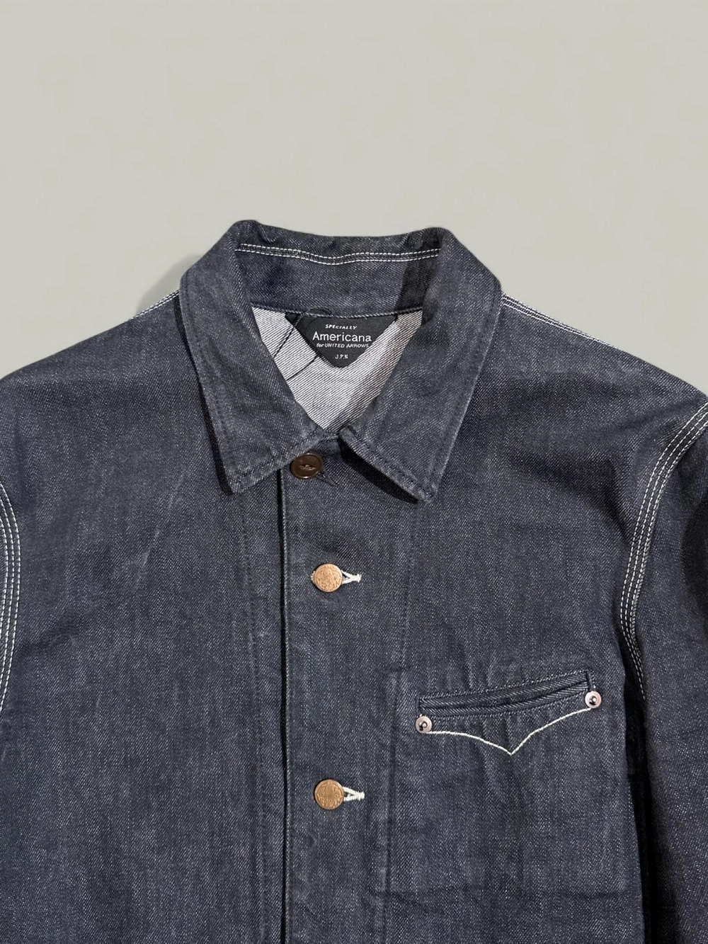 아메리카나(Americana)가 유나이티드 애로우즈(UNITED ARROWS)를 위해 제작한 익스클루시브 데님 워크 재킷입니다.