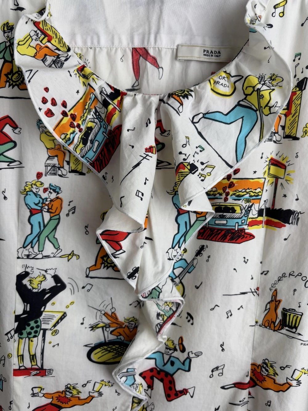 Prada SS12 Runway Popeline Dance Print Ruffle Dress