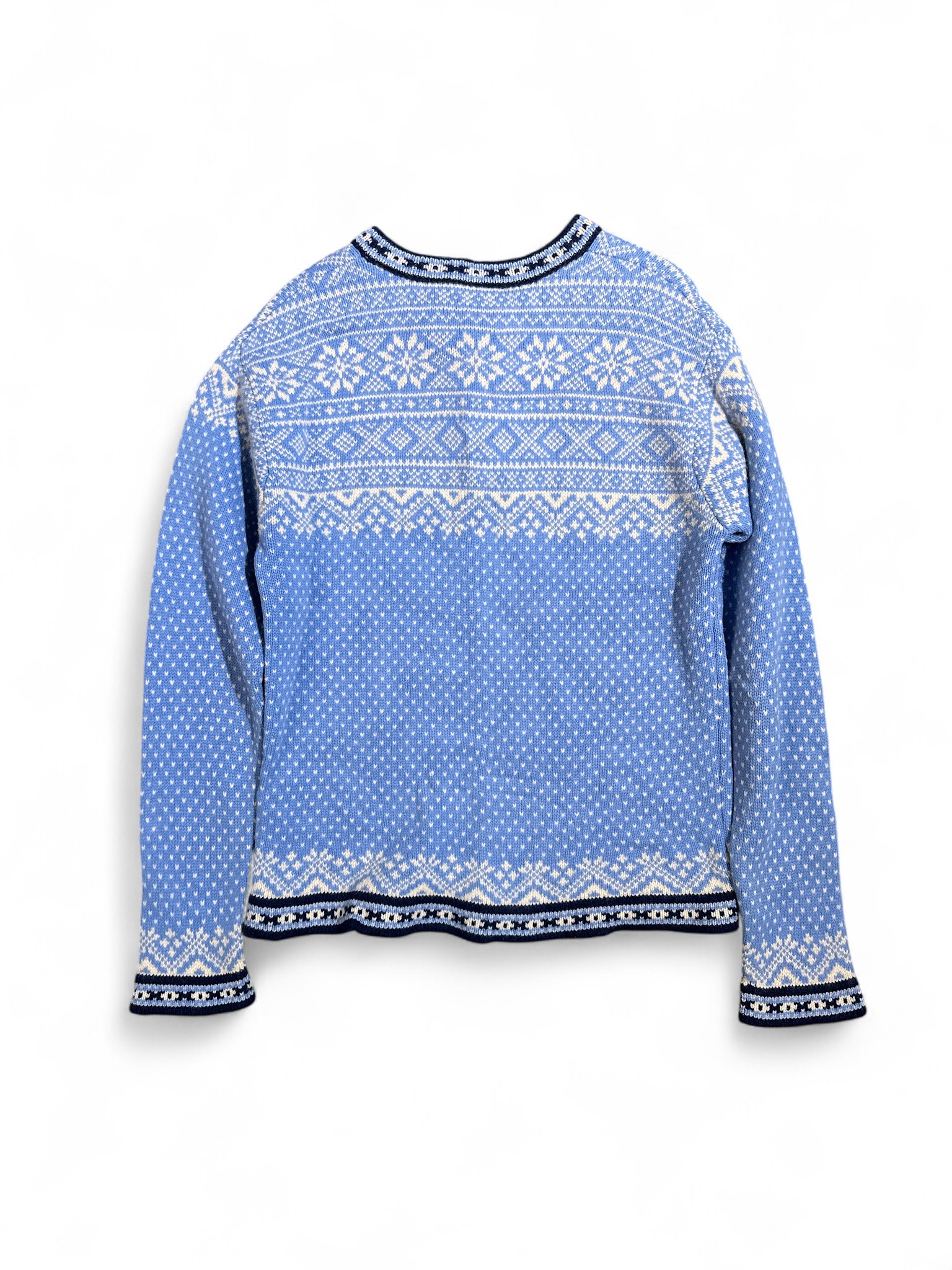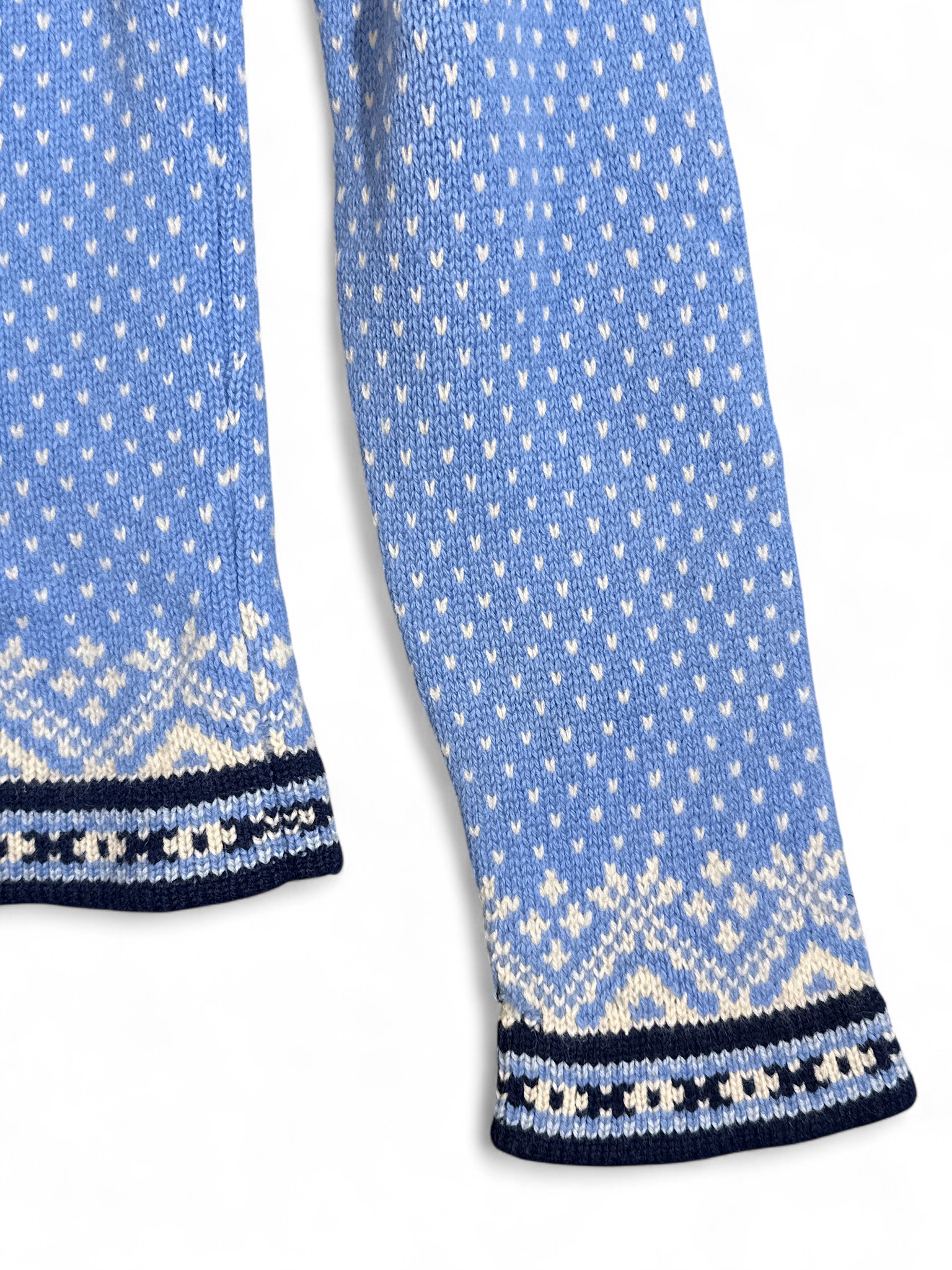 100% 메리노울 소재의 노르딕 스노우 패턴 스웨터.