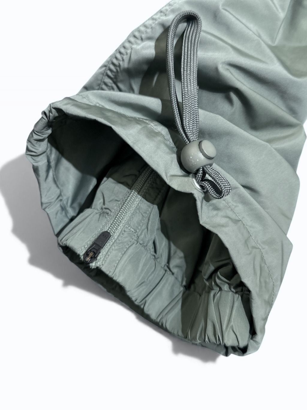 밑단 내부 지퍼와 스트링 조절 구조로